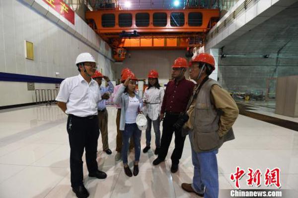 圖為柬埔寨主流媒體代表團參觀百色水利樞紐發電廠。俞靖攝